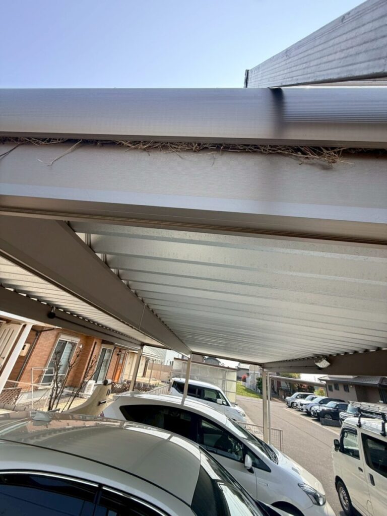 「2年前にカーポートの隙間に雀の巣が作られて、去年は大丈夫だったけど今年また作られてしまった」とのご相談をいただき、現地調査にお伺いしました。