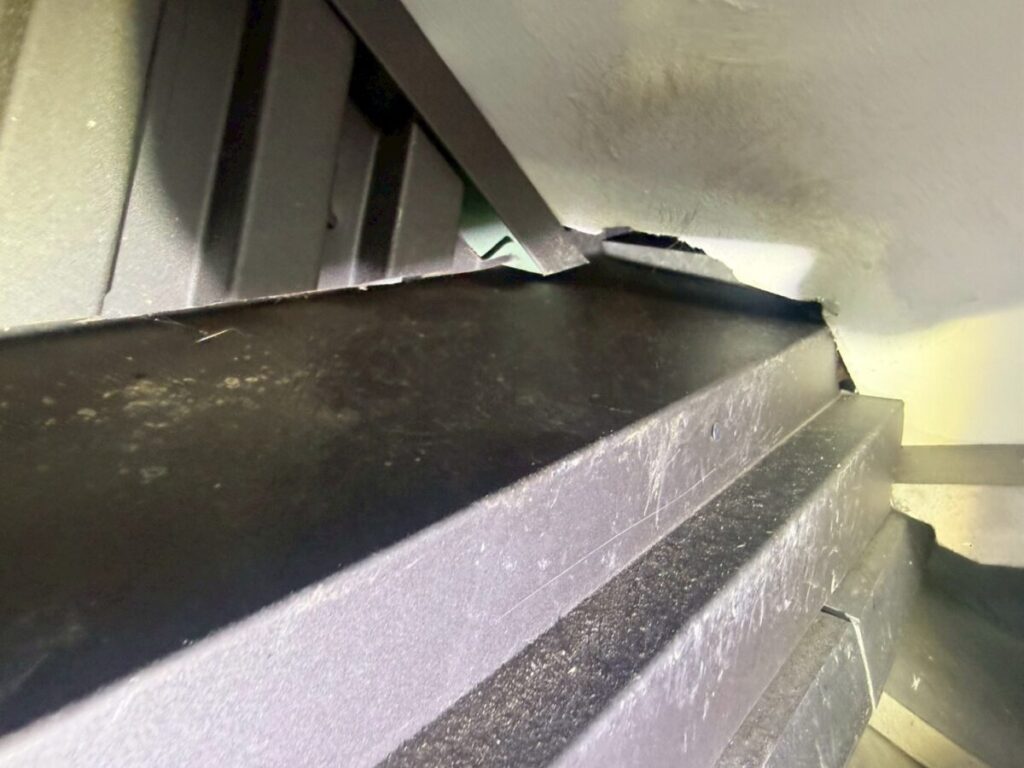 特に注目すべきは軒天部分です。通常、イタチはすでにあるすき間を利用して侵入しますが、今回はイタチが軒天を自ら壊して侵入していました。これは家に対してよほど強い執着心を持っている証拠で、経験上、こうしたケースは再発リスクが高い傾向にあります。